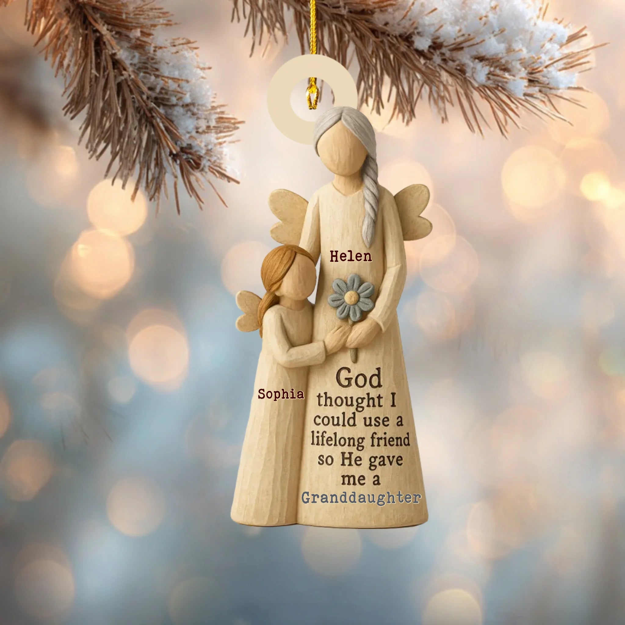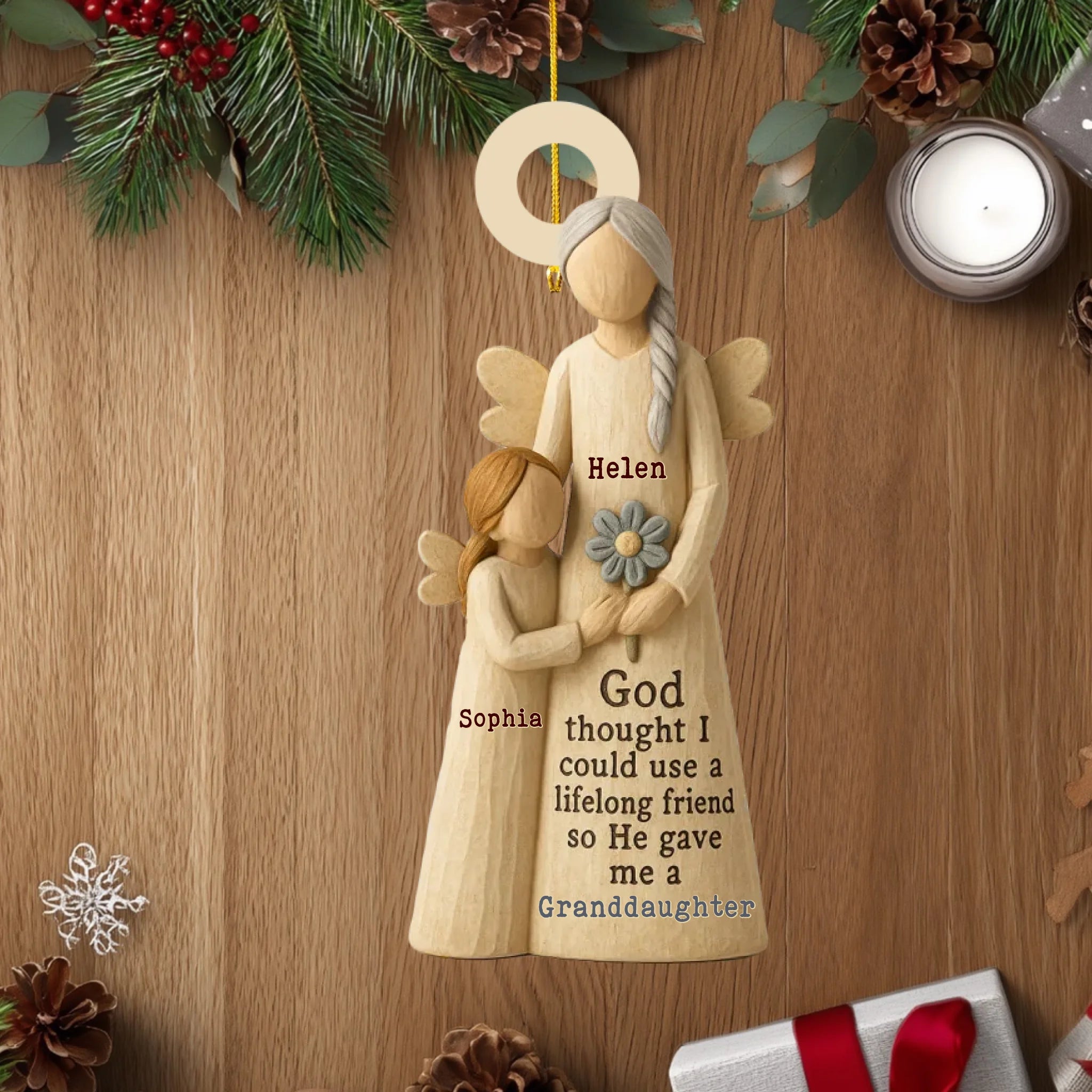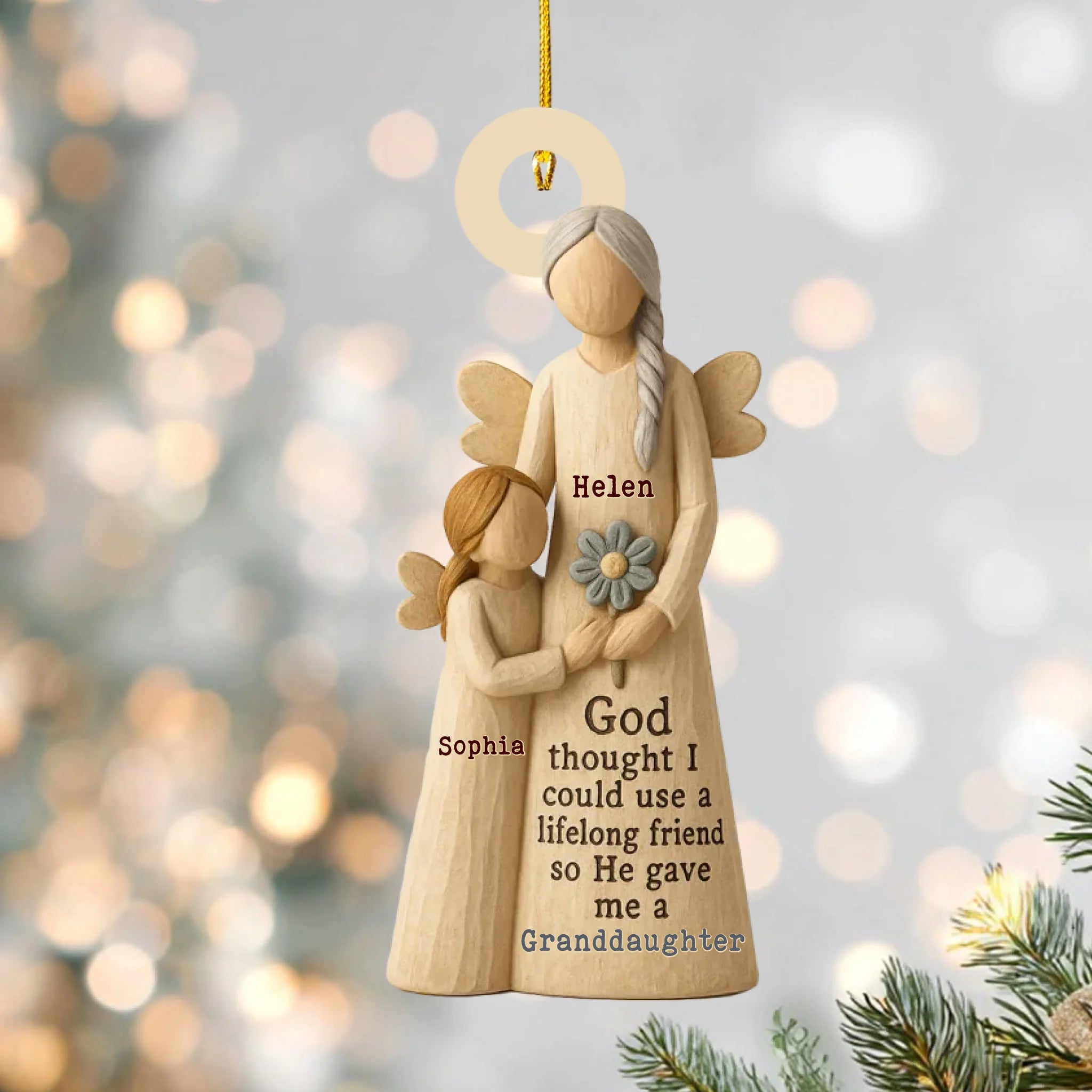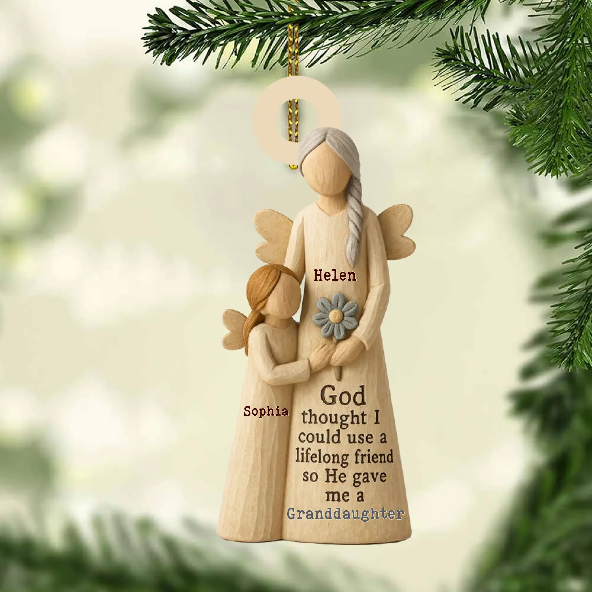 Personalized Wooden Ornament for Grandmother and Granddaughter – Custom Angel Design, Heartfelt Christmas Gift of Love