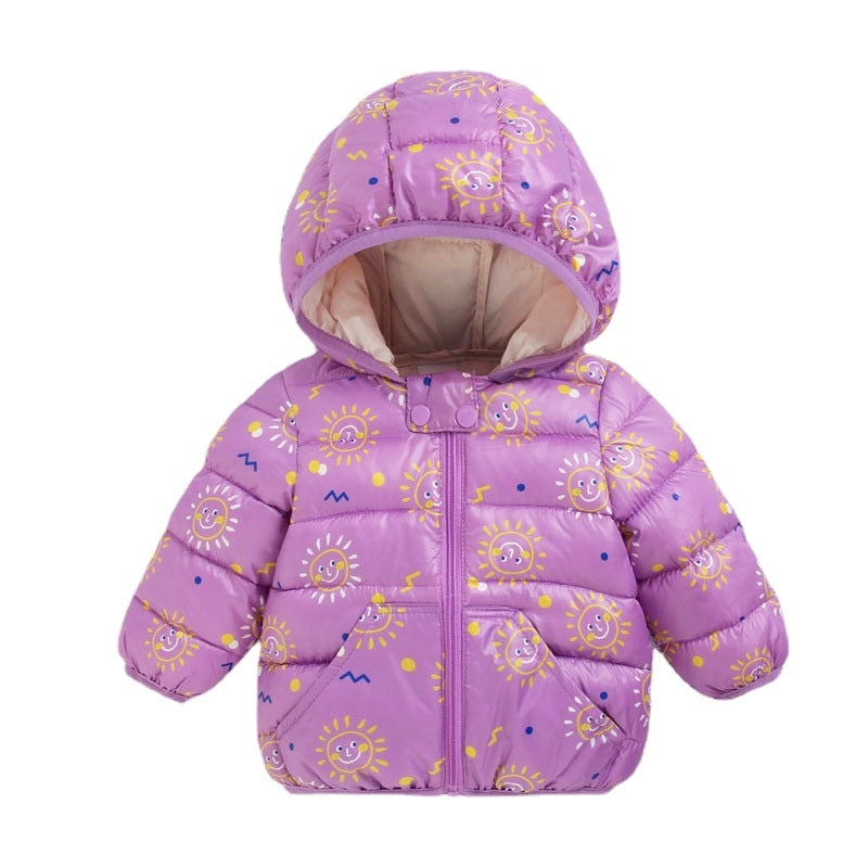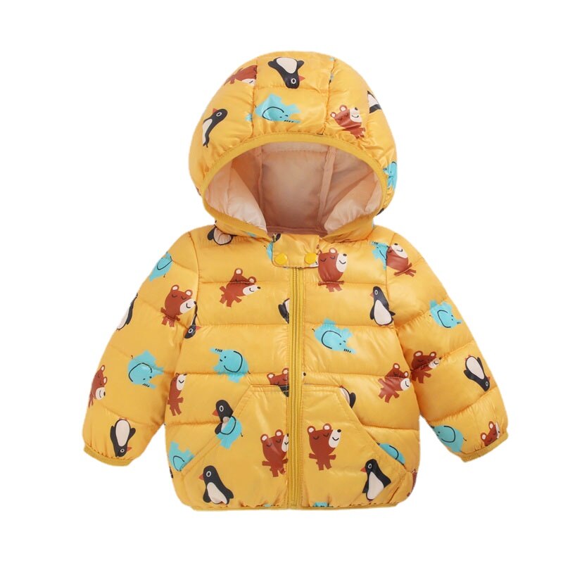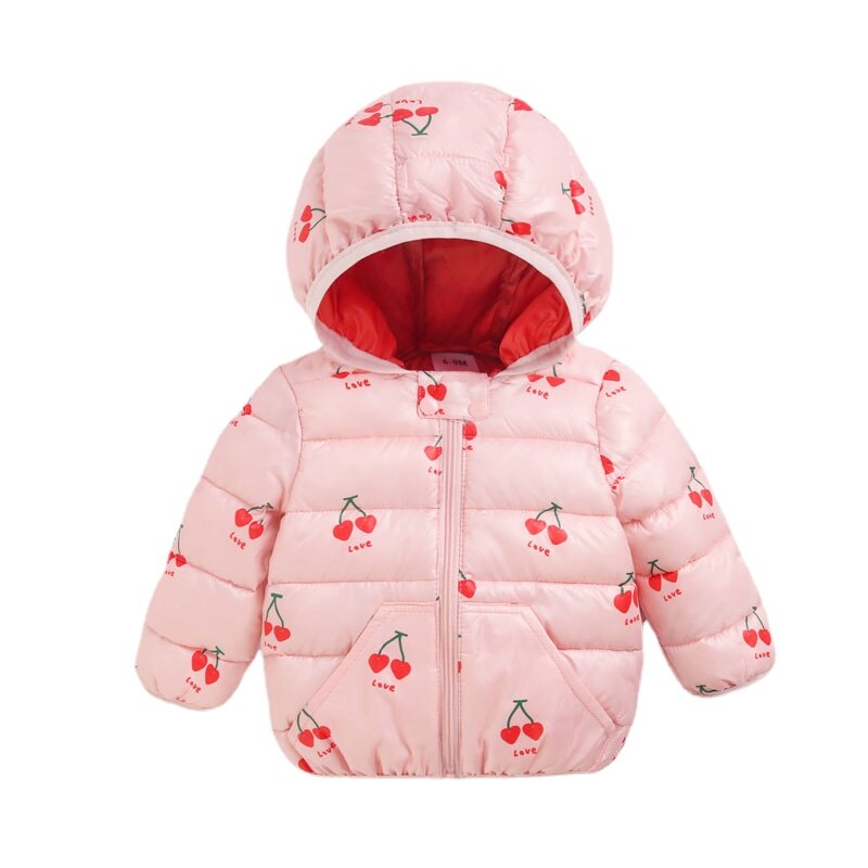 This pink duck pattern baby winter parka jacket is made of cotton material and polyester fiber. It's a great gift for your little ones to keep them warm and cozy during the cold winter days.
