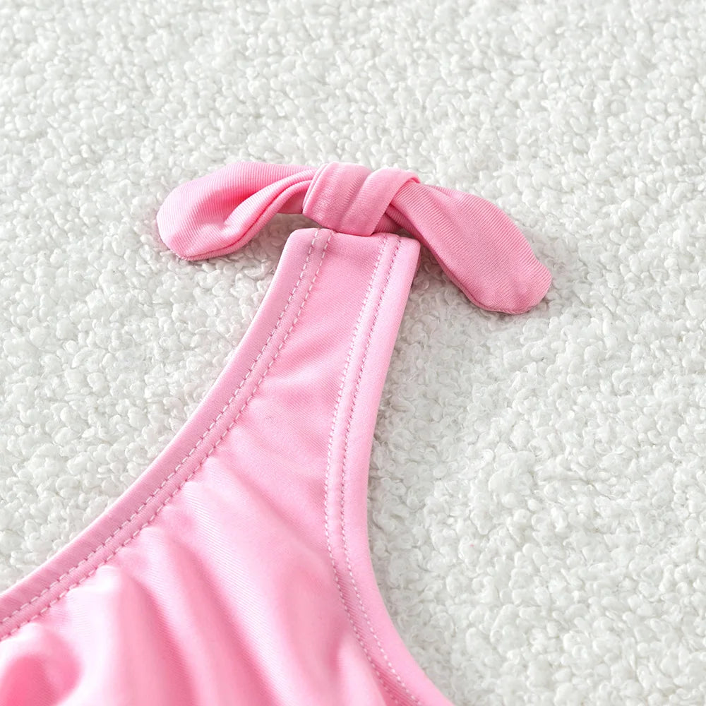 Dive into summer with our charming one-piece swimsuit featuring a playful tropical plant print in shades of pink. The butterfly strap detail adds an extra touch of sweetness to your baby girl's swimwear ensemble.