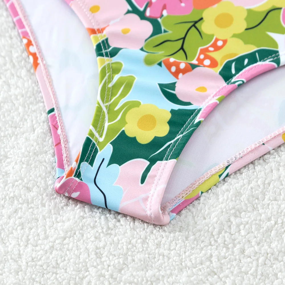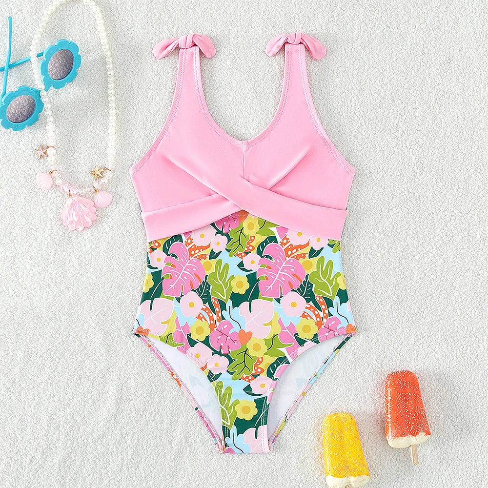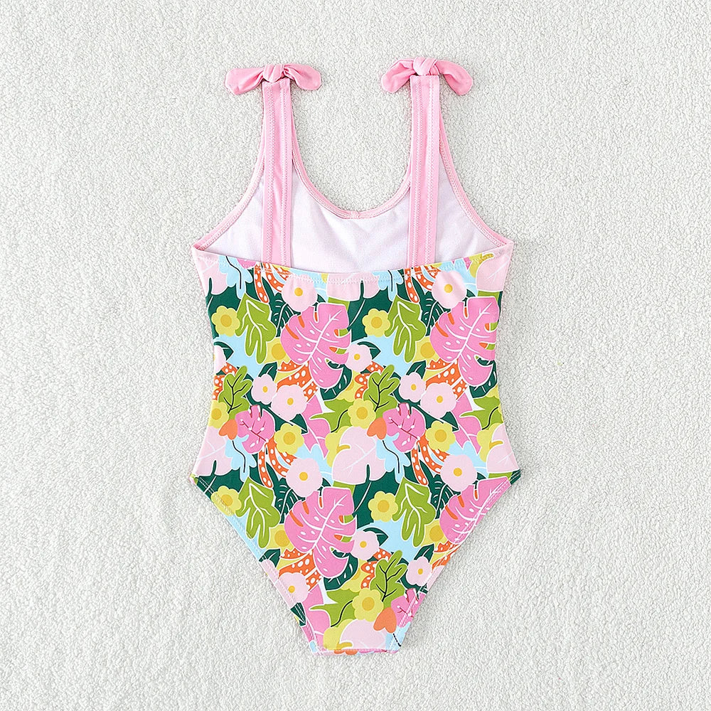 Introducing Our Pink Tropical Plant Print Swimsuit: A Delightful One-Piece for Your Little Girl's Swim Adventures!