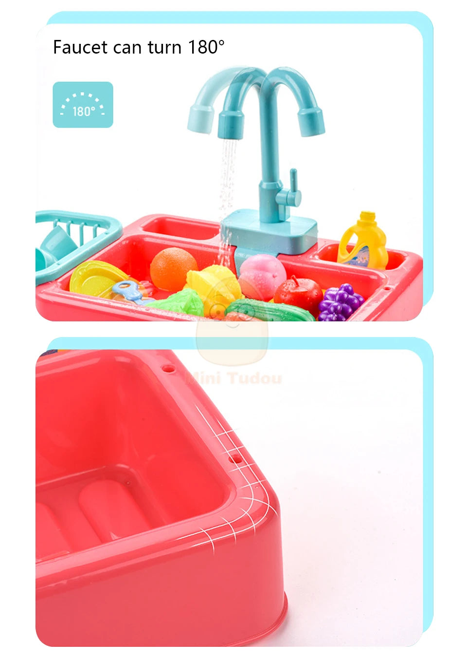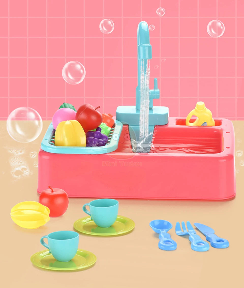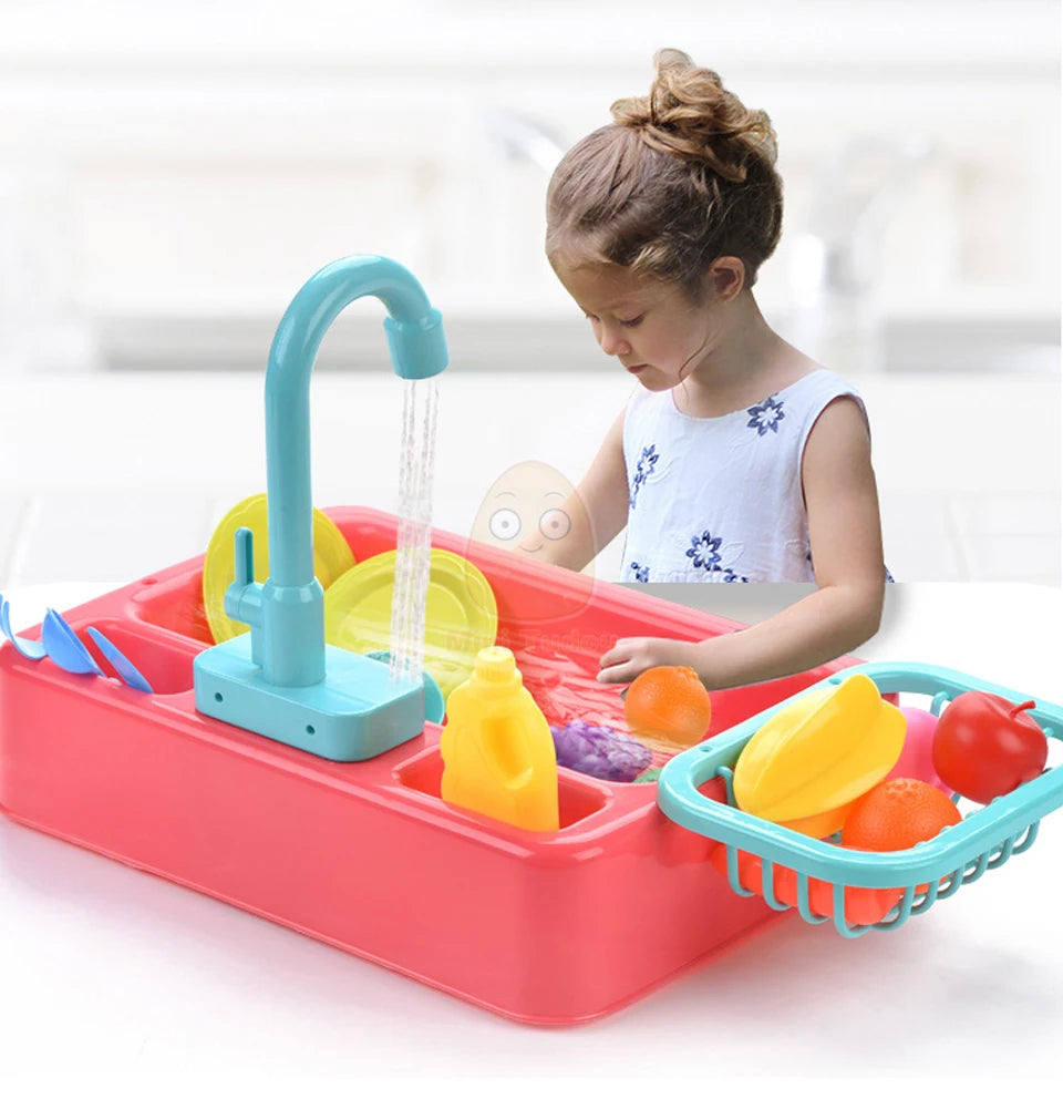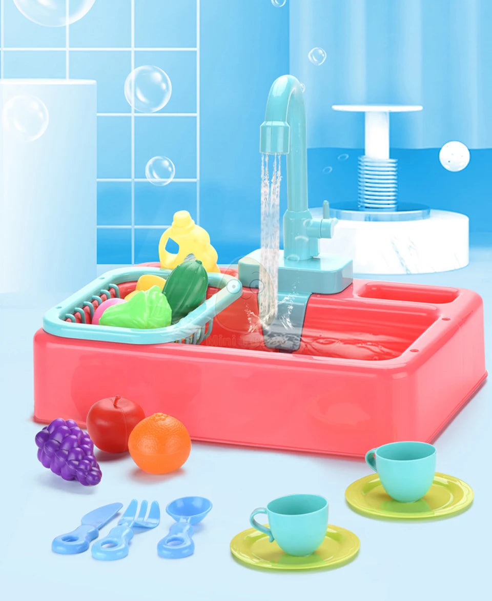 Unique Features: Just fill the base of the sink with water, turn the handle, and watch as water pours from the faucet, mimicking the real kitchen experience. With our unique water circulation system, there's no need for constant refilling, and no water goes to waste during playtime.