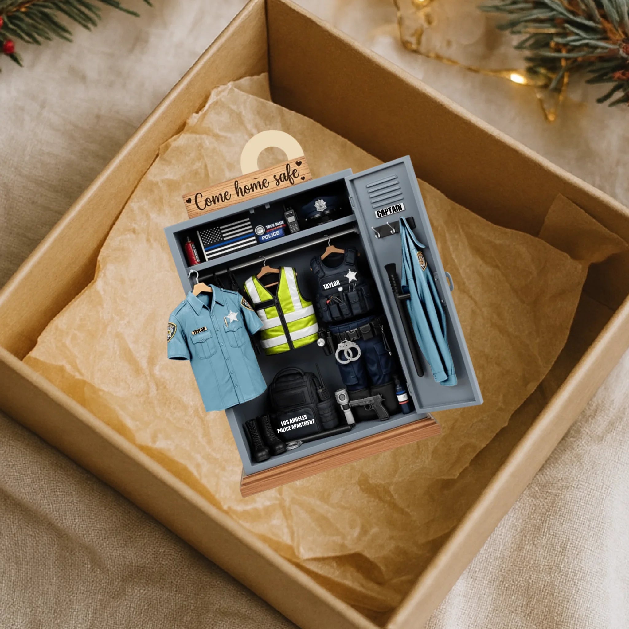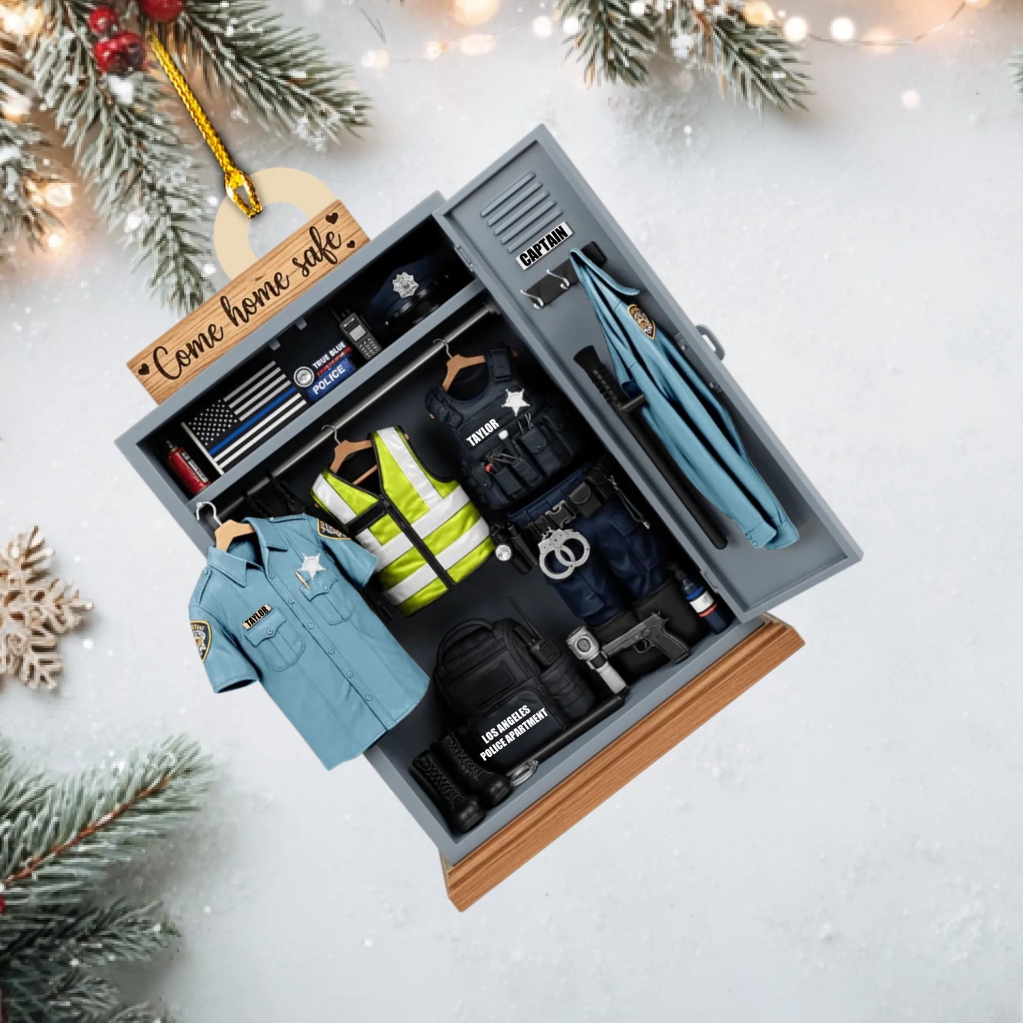 Personalized Police Locked Ornament – Custom Officer Name, Badge, Uniform & Department