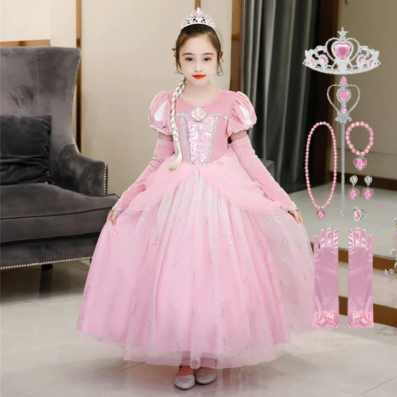See fairy tales come to life in this Puff Sleeve Layer Skirt Pink Princess Gown. Your little one can wear this on Halloween, or even on costume play in school. Light and comfortable to wear, but, very elegant and royal to look at.