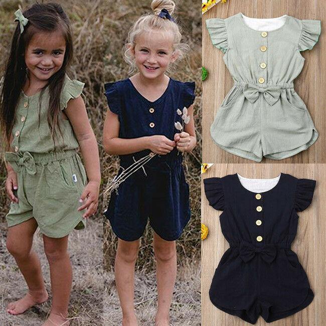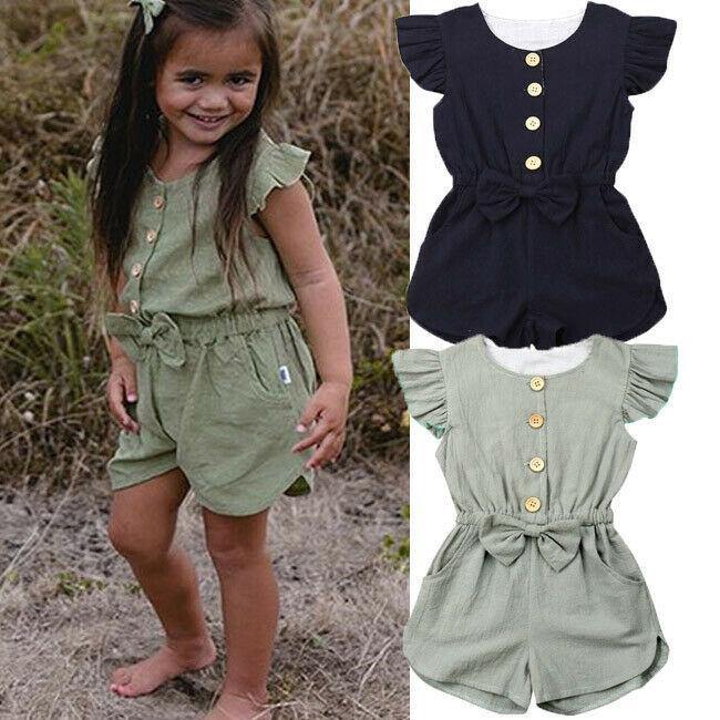 The cotton fabric provides a smooth soft texture and avoids rashes to the sensitive skin of baby girls. The cap sleeves are ruffled to add an extra stylish flair to the design. The elastic waistline is pleated that adjusts perfectly. A prominent bow and the button-down top make the Jumpsuit more fashionable.