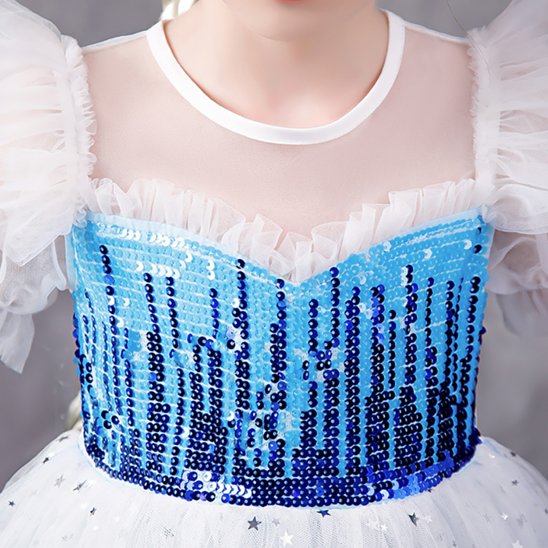 This Sequin Design Puff Sleeves Snow Princess Costume Party Dress is the cutest party snow princess dress for girls. It has beautiful sequin and beading design details that looks astonishingly unique and fashionable. The perfect dress for your girl's summer princess costume party outfit.