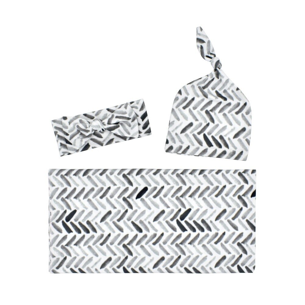 Set of Blanket Infant Swaddle, Wrap Headband, Hat Floral Print