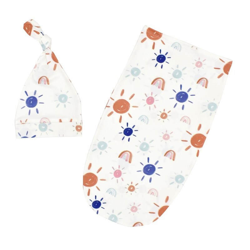 Combo of newborn swaddling towel including hat and anti-startling silkworm cocoon bag. Newborn babies often startle and kick when they sleep because their brains are still weak, which in the long run is not good for the child's development because sleep is not complete. The infant swaddle combo including a hat and anti-startling silkworm cocoons will help keep your baby warm and have a deep sleep all night.