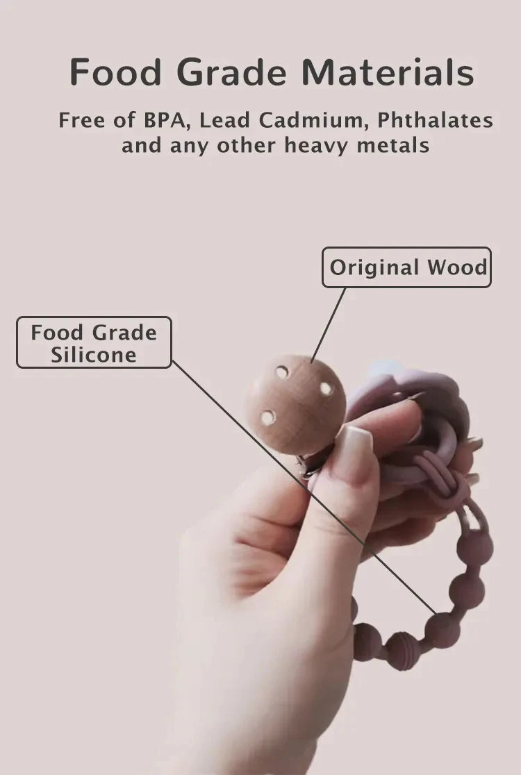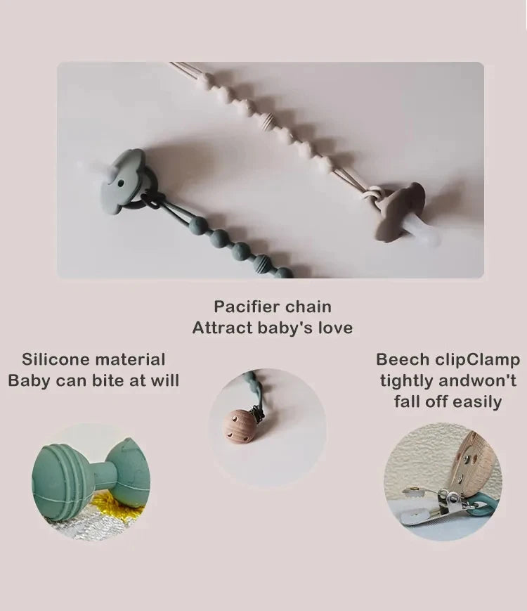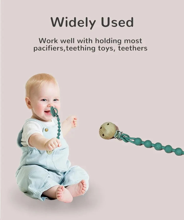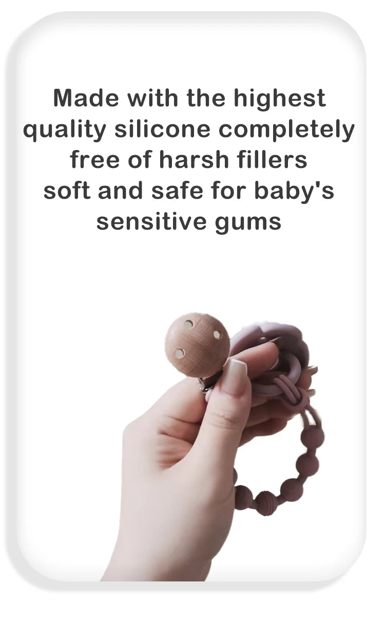 Versatile Use: Beyond being a pacifier holder, it doubles as a teether bracelet, providing sensory exploration and teething relief for your baby.