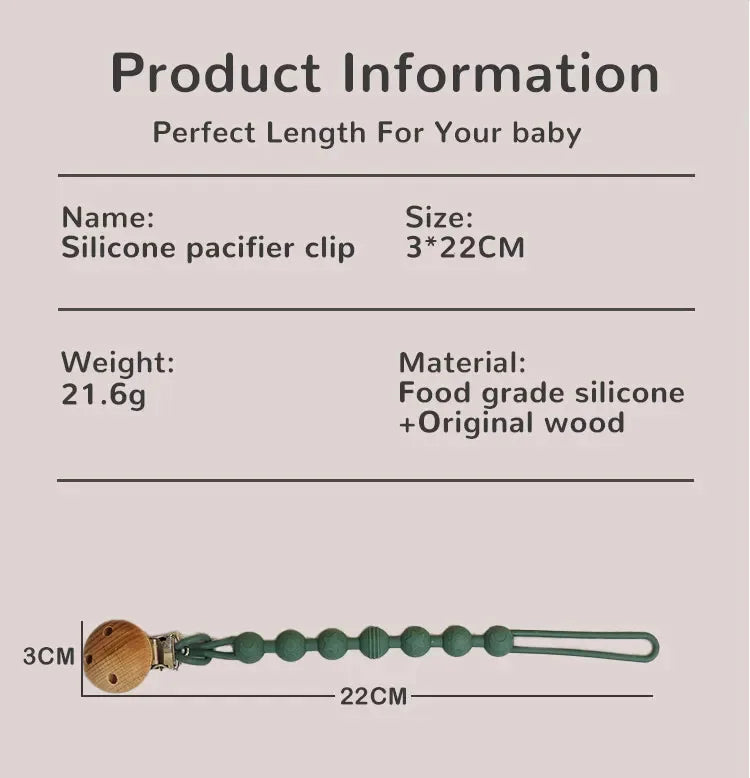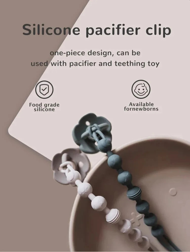 Introducing our Silicone Pacifier Clip, a delightful accessory designed with your baby's comfort and safety in mind. Crafted from high-quality silicone, this clip is both charming and functional, ensuring your little one's pacifier is always within reach.
