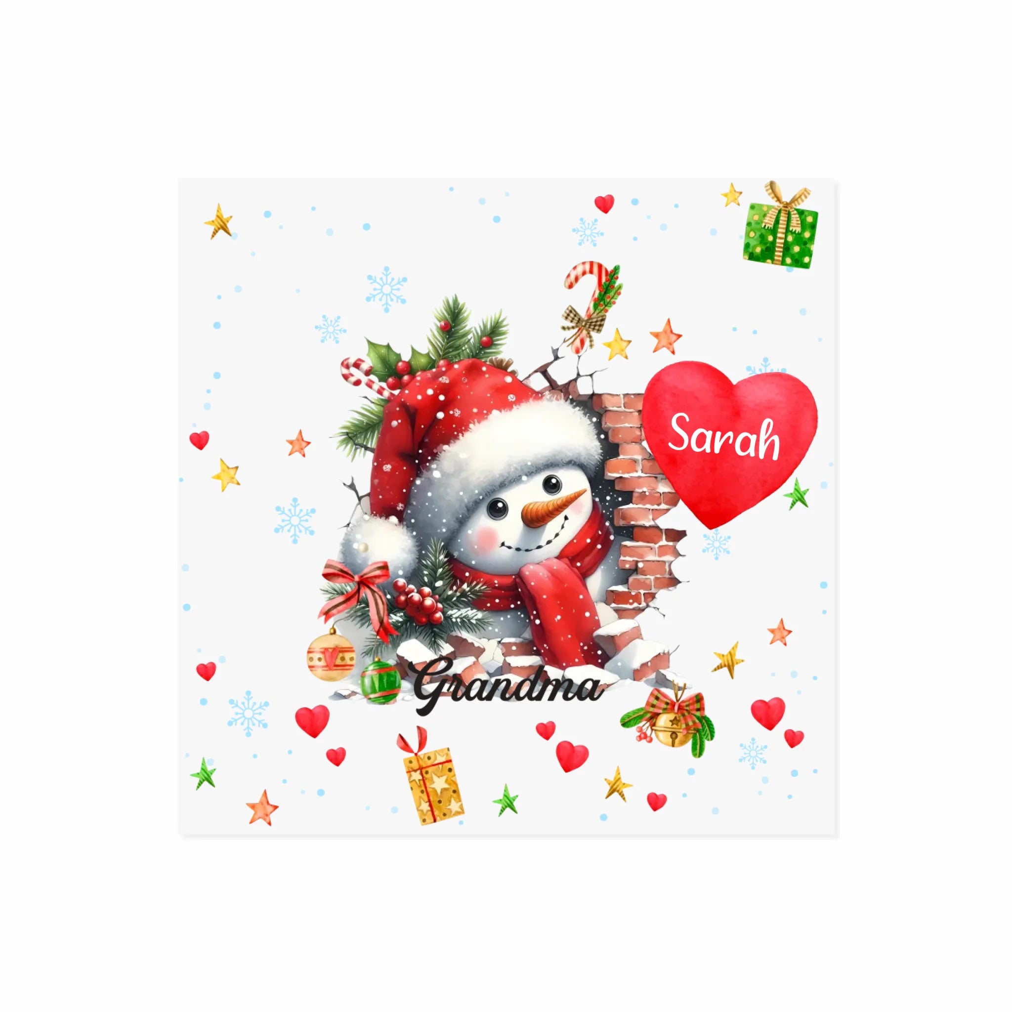 Snowman Grandma & Grandkids Personalized Heart Decal – Custom Name Christmas Sticker