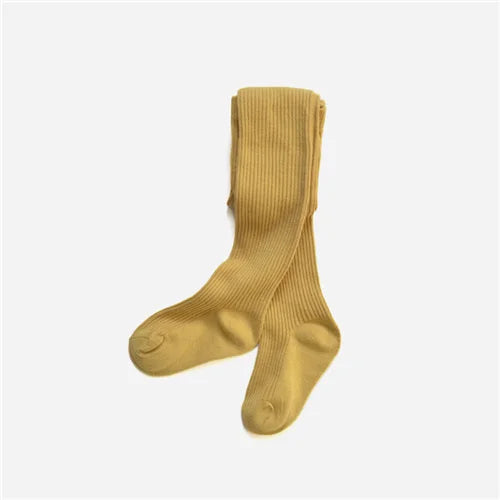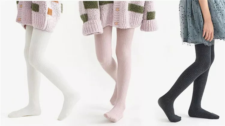 Solid Cotton Knitted Girls' Tights - Cozy Leggings for Kids