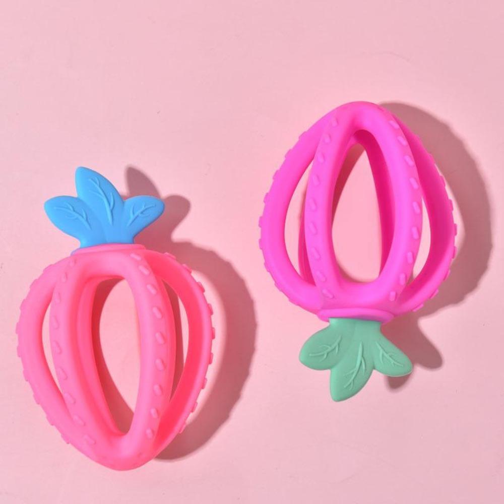 The Strawberry Silicone Pendant Baby Teethers has the characteristics of bite resistance and unique texture, can meet different needs of long-term bitterness, relieve toothache out and allow baby to chew freely.