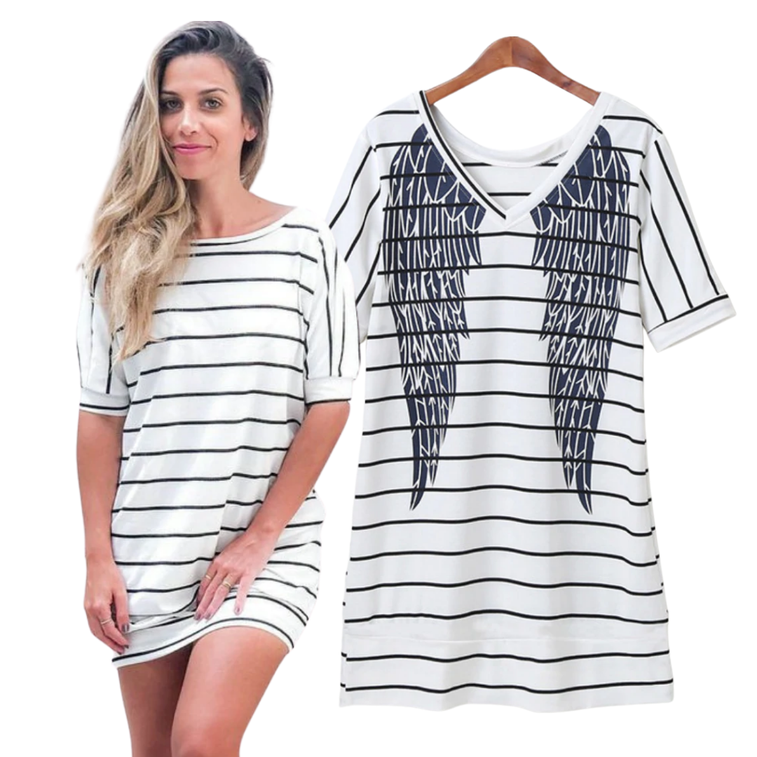 Stripes Angel Wings Mommy and Me Matching Tee Dress
