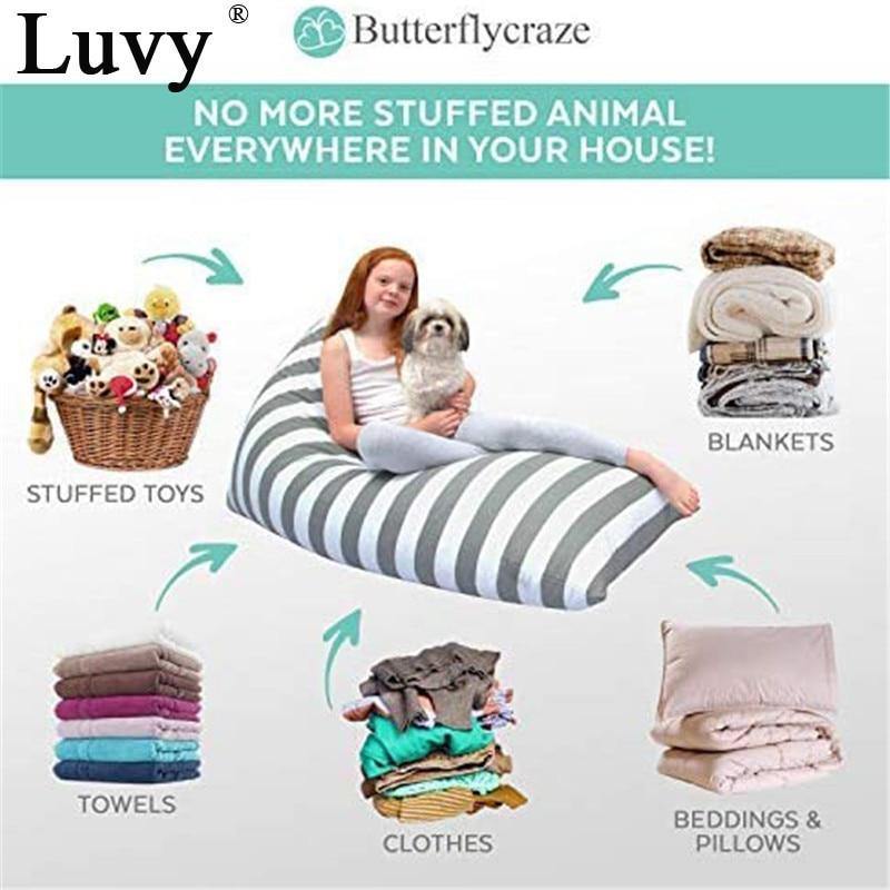 - It has a large storage capacity and can hold various items such as stuff toys, throw pillows, clothes, blankets, etc.