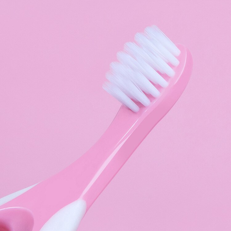- These baby's first toothbrushes come with a built-in chewing grip, helping stimulate the baby’s sensitive gums in a pleasant manner, helping reduce itching and pain caused by new emerging teeth. The ergonomic handle is easy to handle by babies and parents as well!