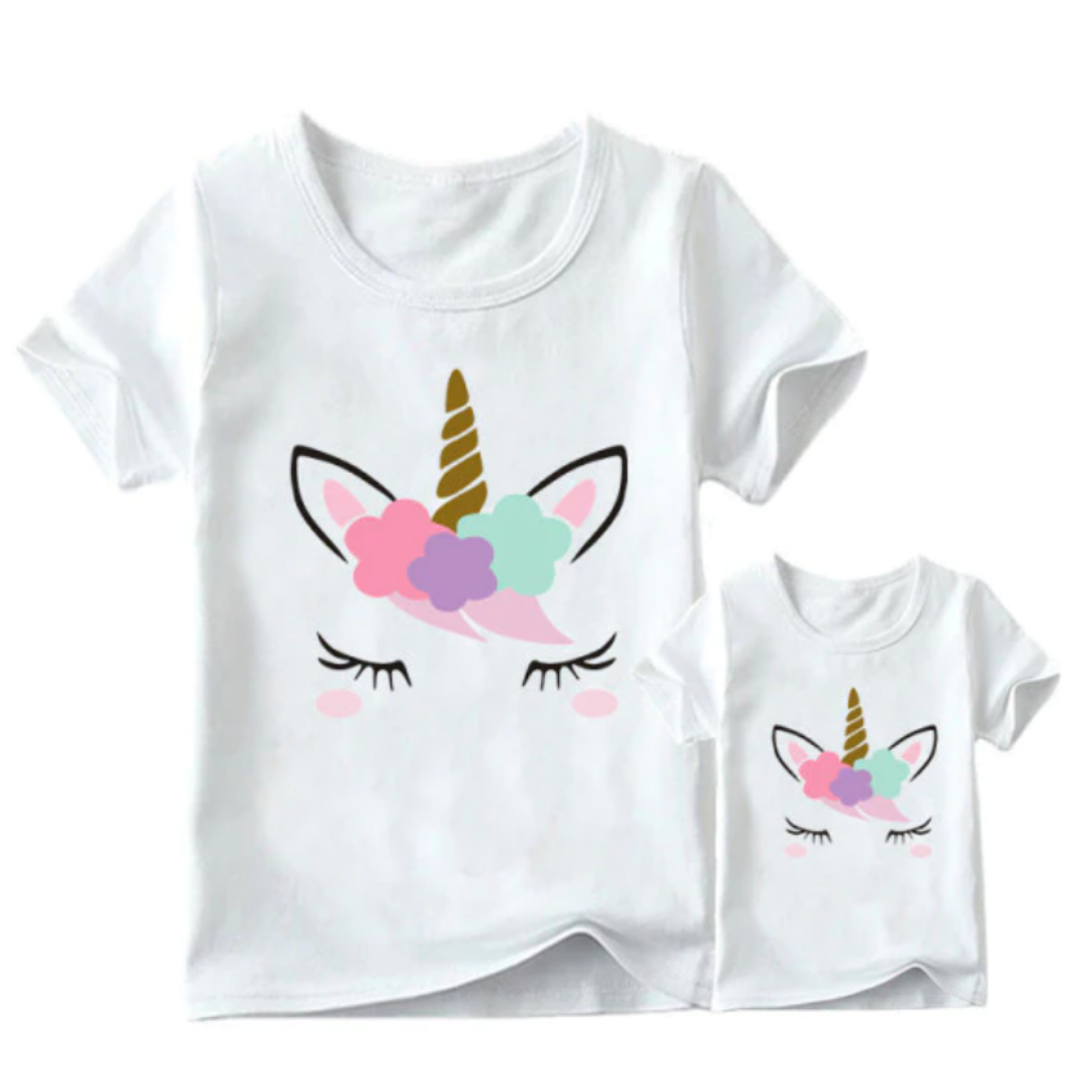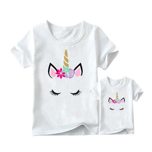 Unicorn Print Mommy and Daughter Matching T-Shirt