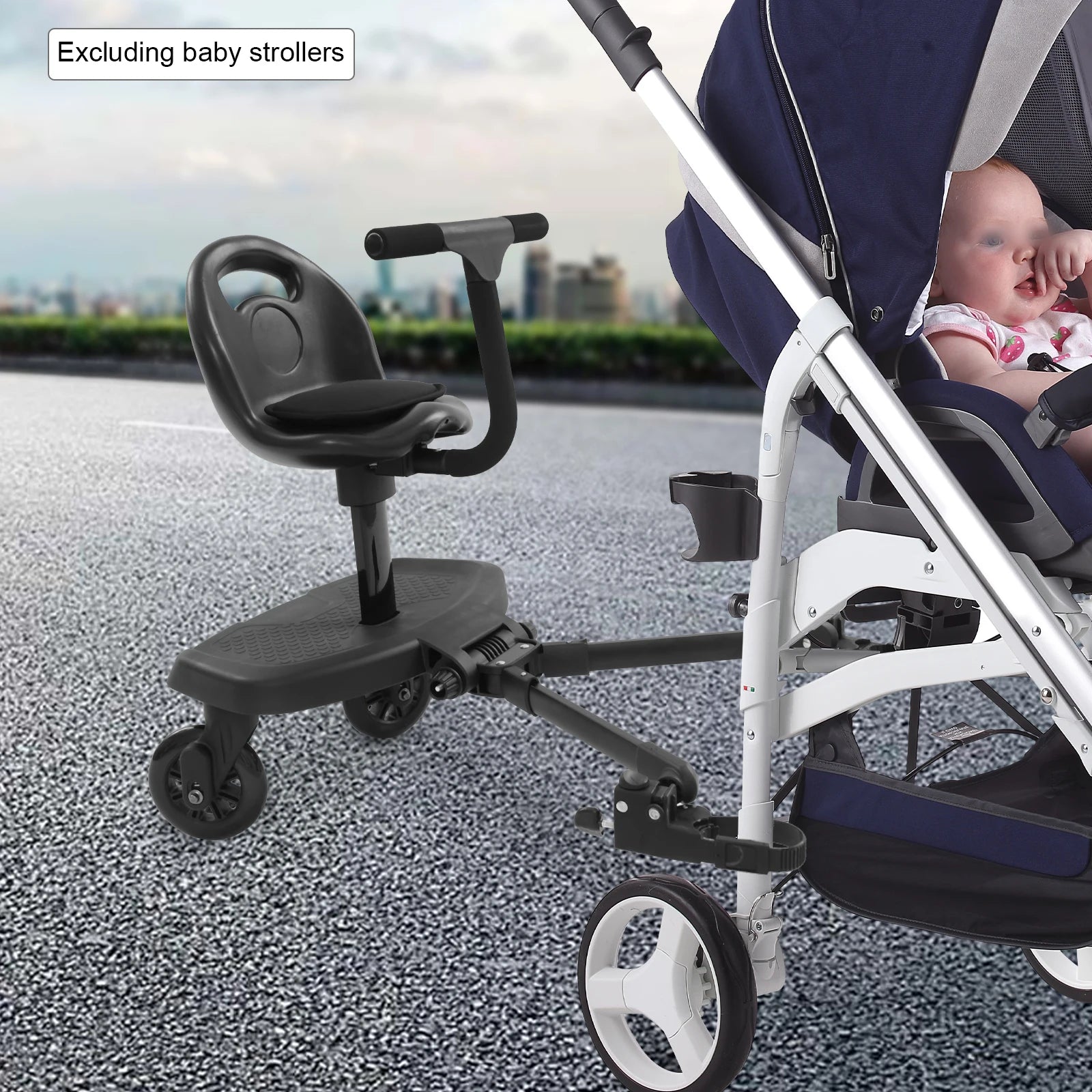 Universal Stroller Ride-On Board 2-in-1 - Removable Seat, 360° Swivel Wheels, 110 lbs Load, Anti-Slip