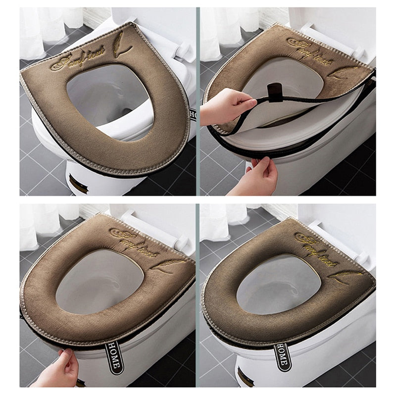 Universal Toilet Seat Cover Soft Removable Zipper With Flip LidHandle