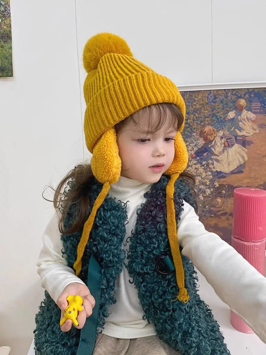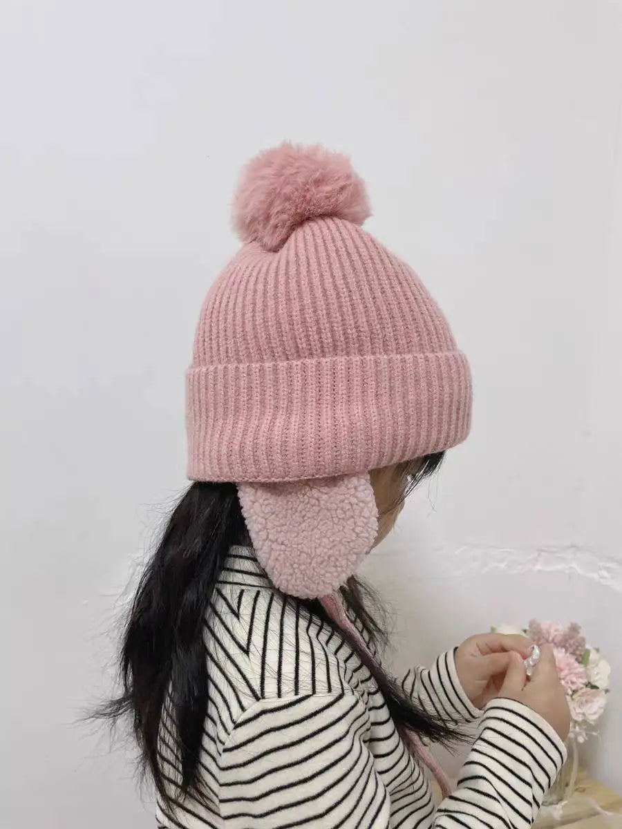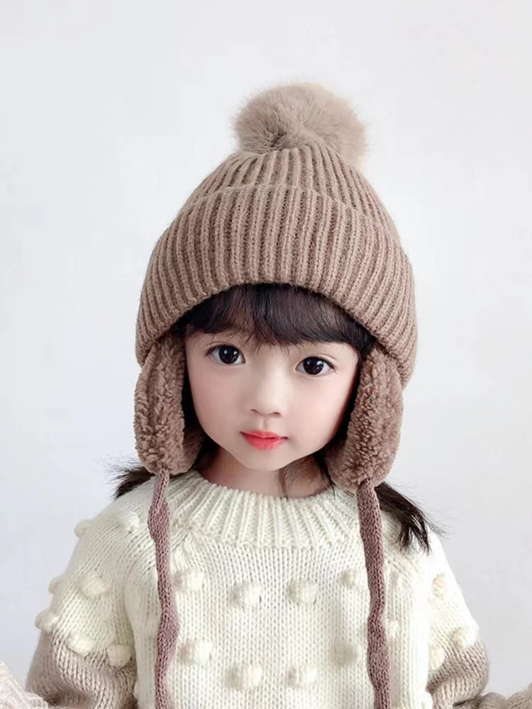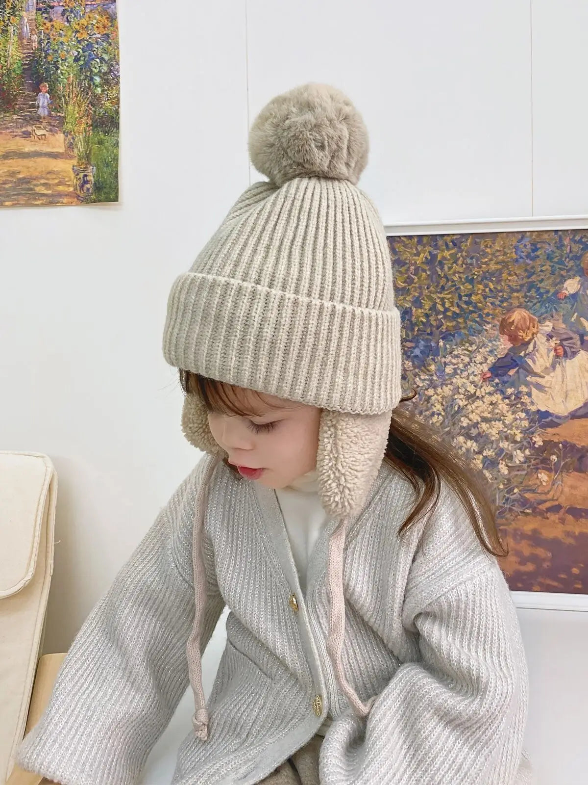 Winter Fashion Cap for Children - Cozy Wool, Windproof, and Cute Pompoms!