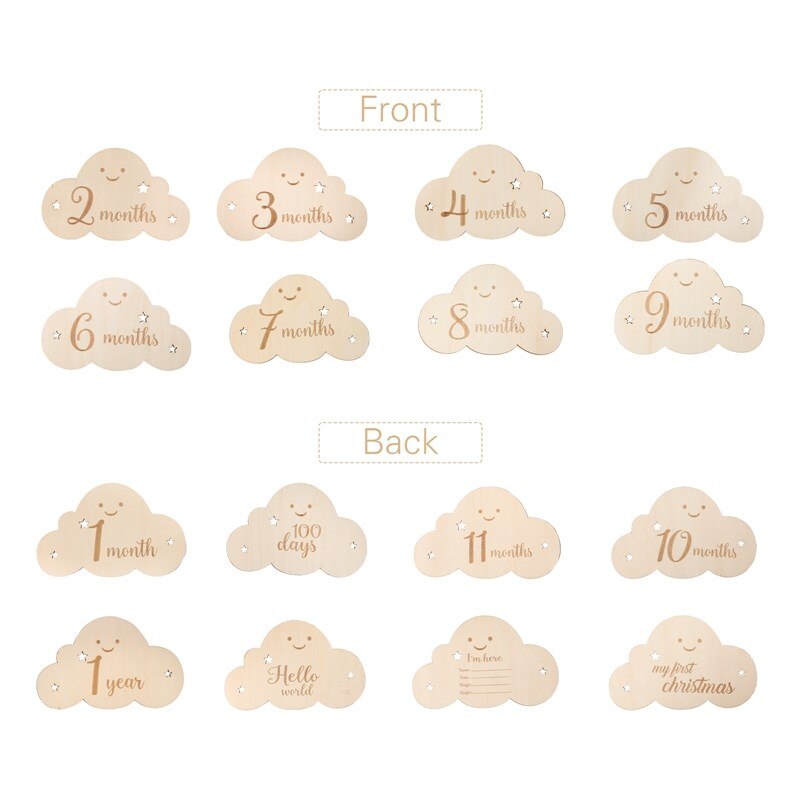 Wooden Baby Milestone Cards Cute Cloud Shape Milestone Set