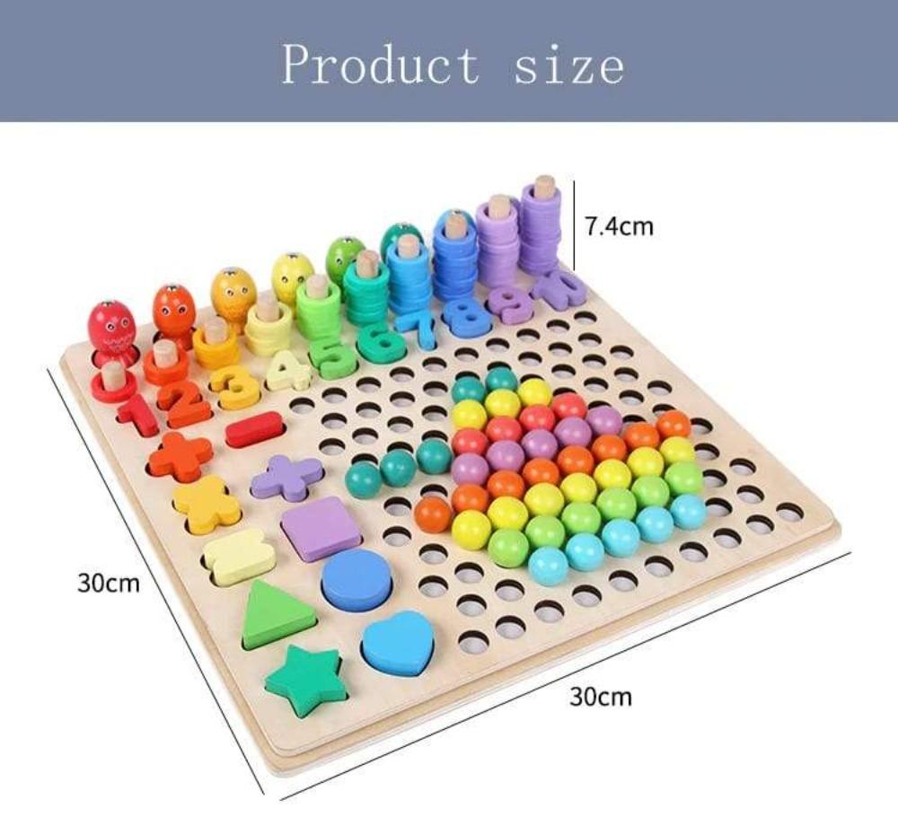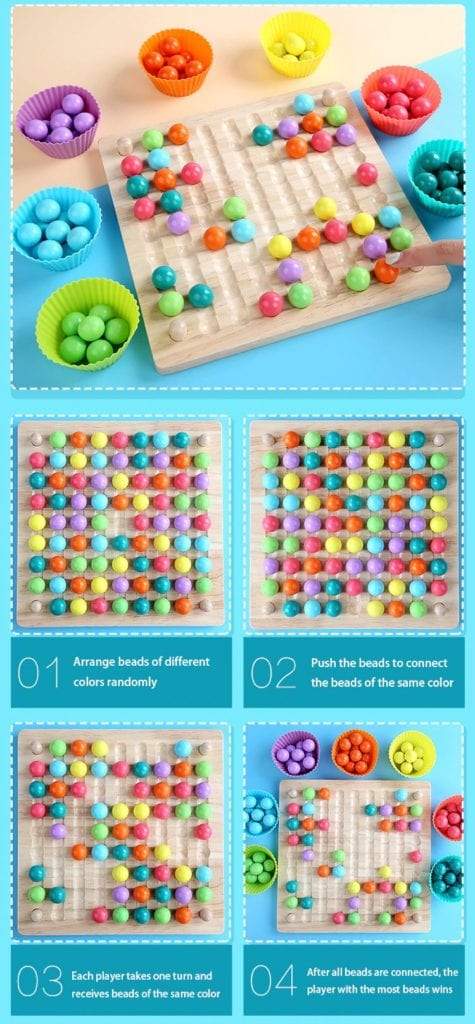 You have to move in a certain way to make sure that if 2, 3, or 4 dots can in a row(The rule can be made by yourself). This wooden early learning Montessori toy is ideal for providing an early start on your child’s STEM development. It is also a perfect travel toy and a perfect learning toy.