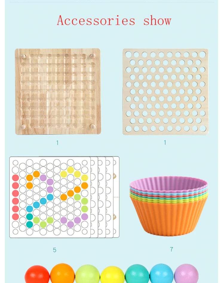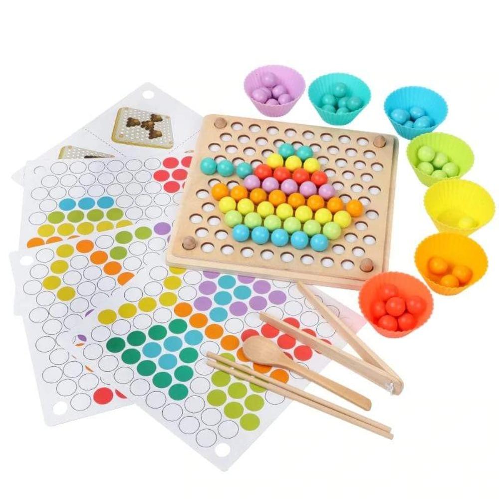 Matching beads jigsaw puzzle and color classification game can train hands-on ability and patience, promote recognition of colors and shapes.