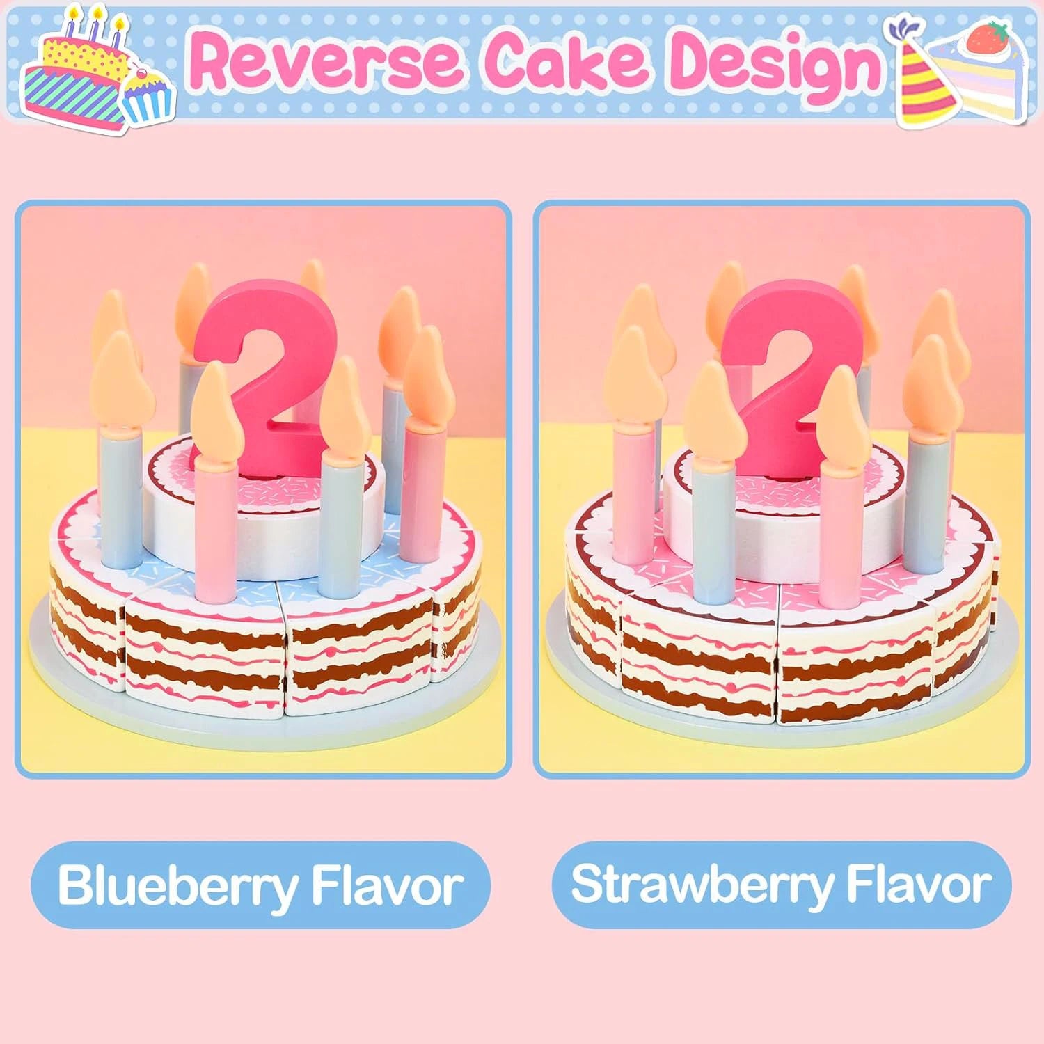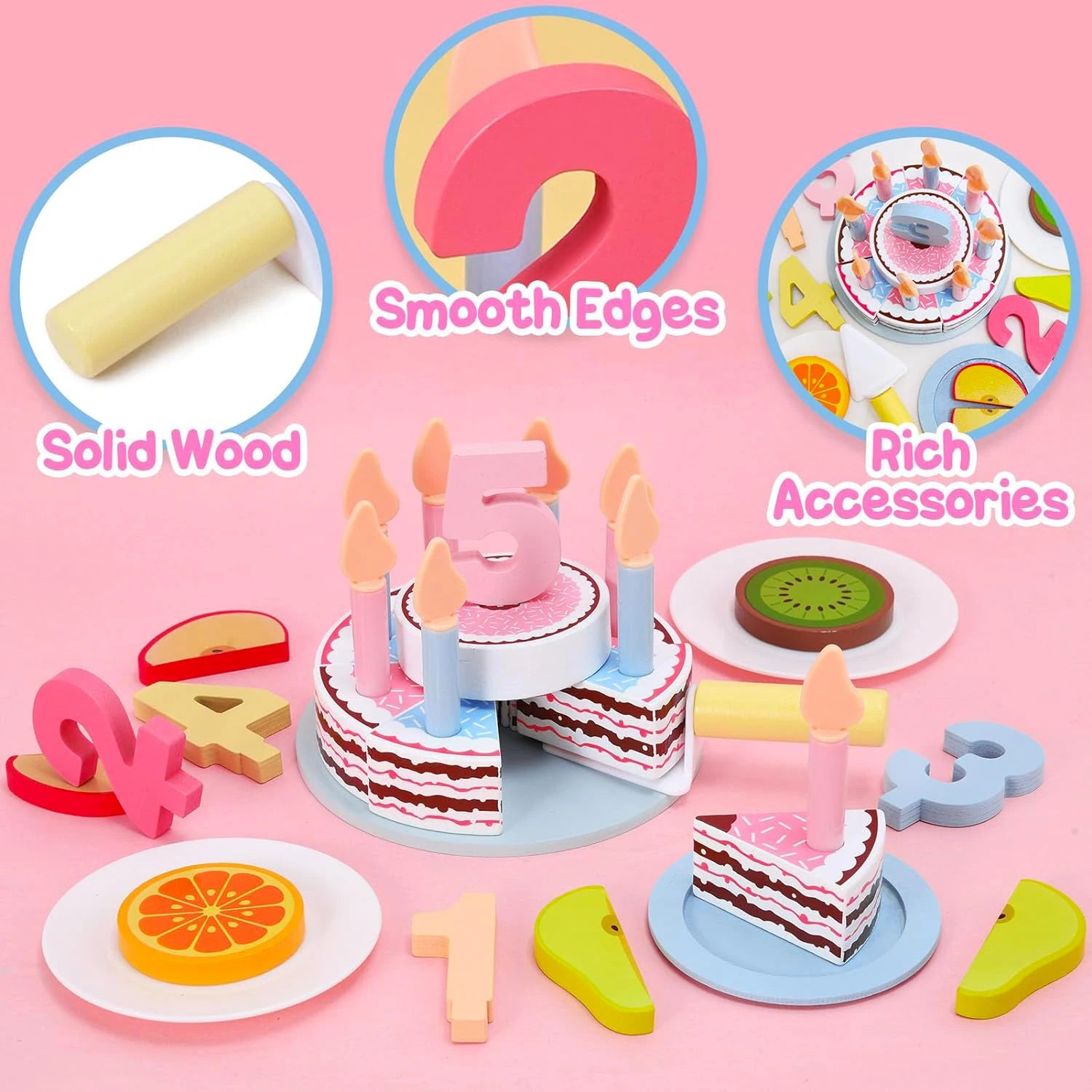 Gâteau d'anniversaire et goûter en bois – Jouets éducatifs Montessori pour enfants, jeu de simulation de nourriture, cadeau pour tout-petits