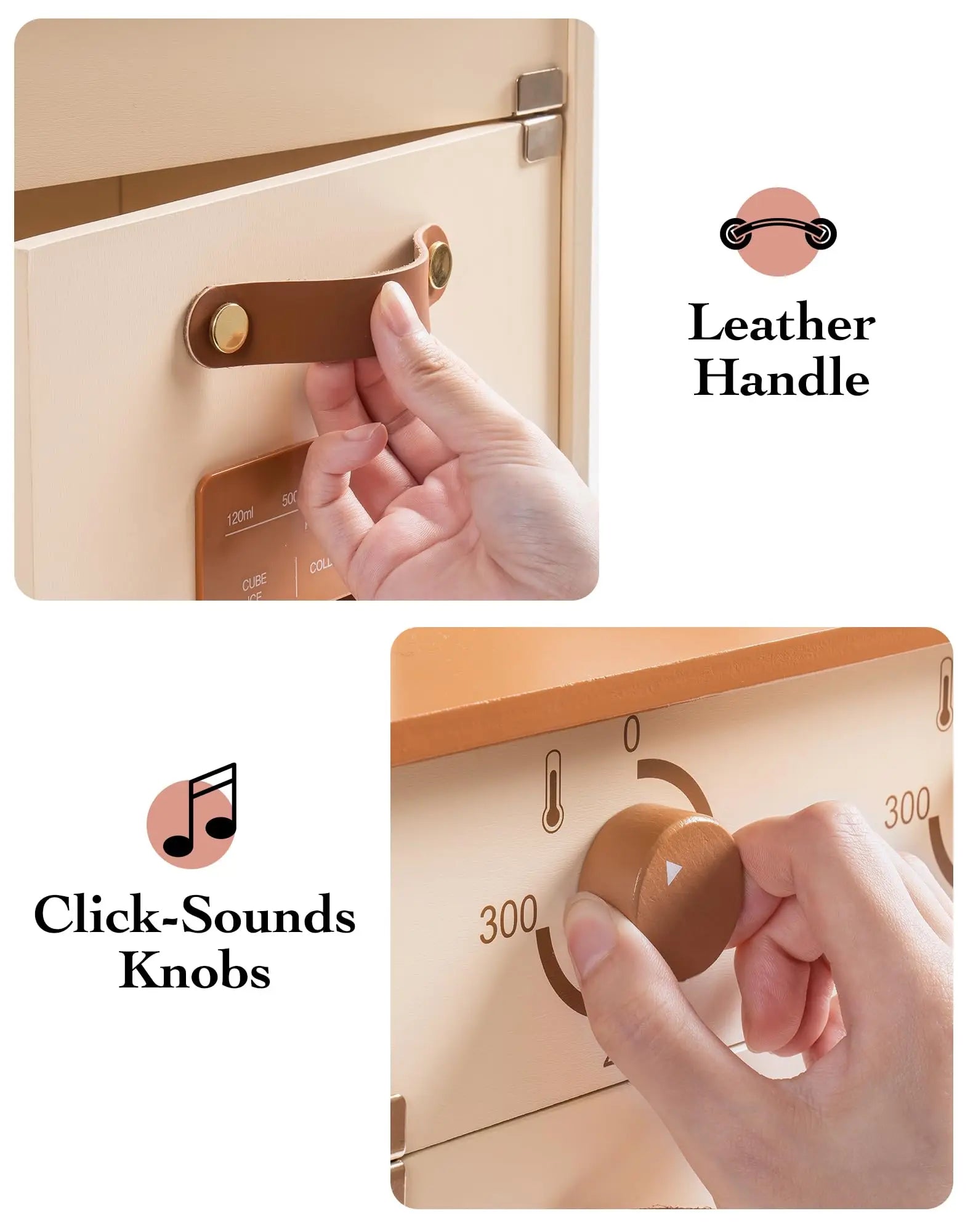 Cuisine en bois pour tout-petits – Cuisine jouet avec distributeur de glaçons, cuisinière, évier et accessoires – Jeu de cuisine réaliste pour enfants de 3 ans et plus